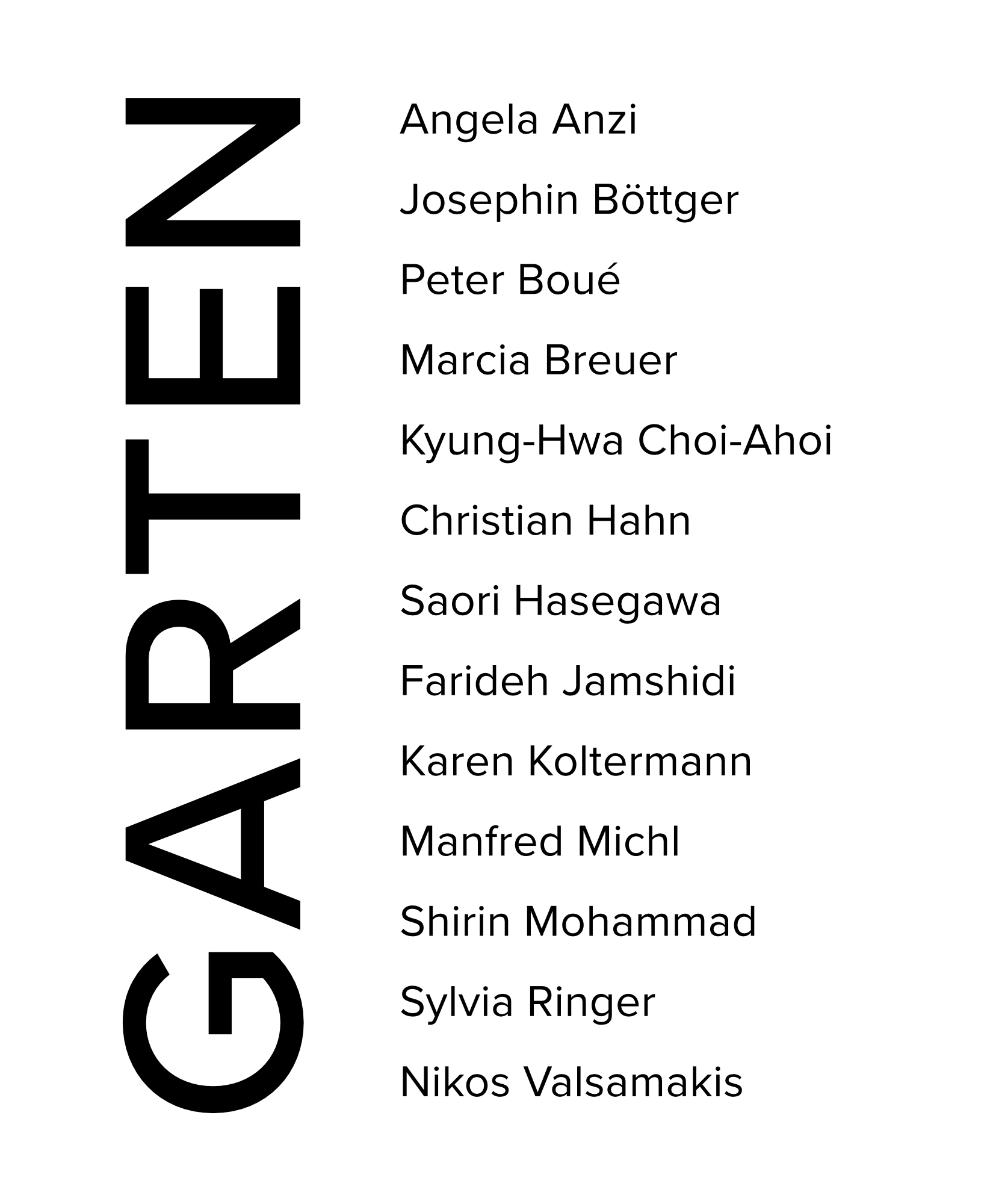 Angela Anzi, Josephin Böttger, Peter Boué, Marcia Breuer, Kyung-Hwa Choi-Ahoi, Christian Hahn, Saori Hasegawa, Farideh Jamshidi, Karen Koltermann, Manfred Michl, Shirin Mohammad, Sylvie Ringer, Nikos Valsamakis